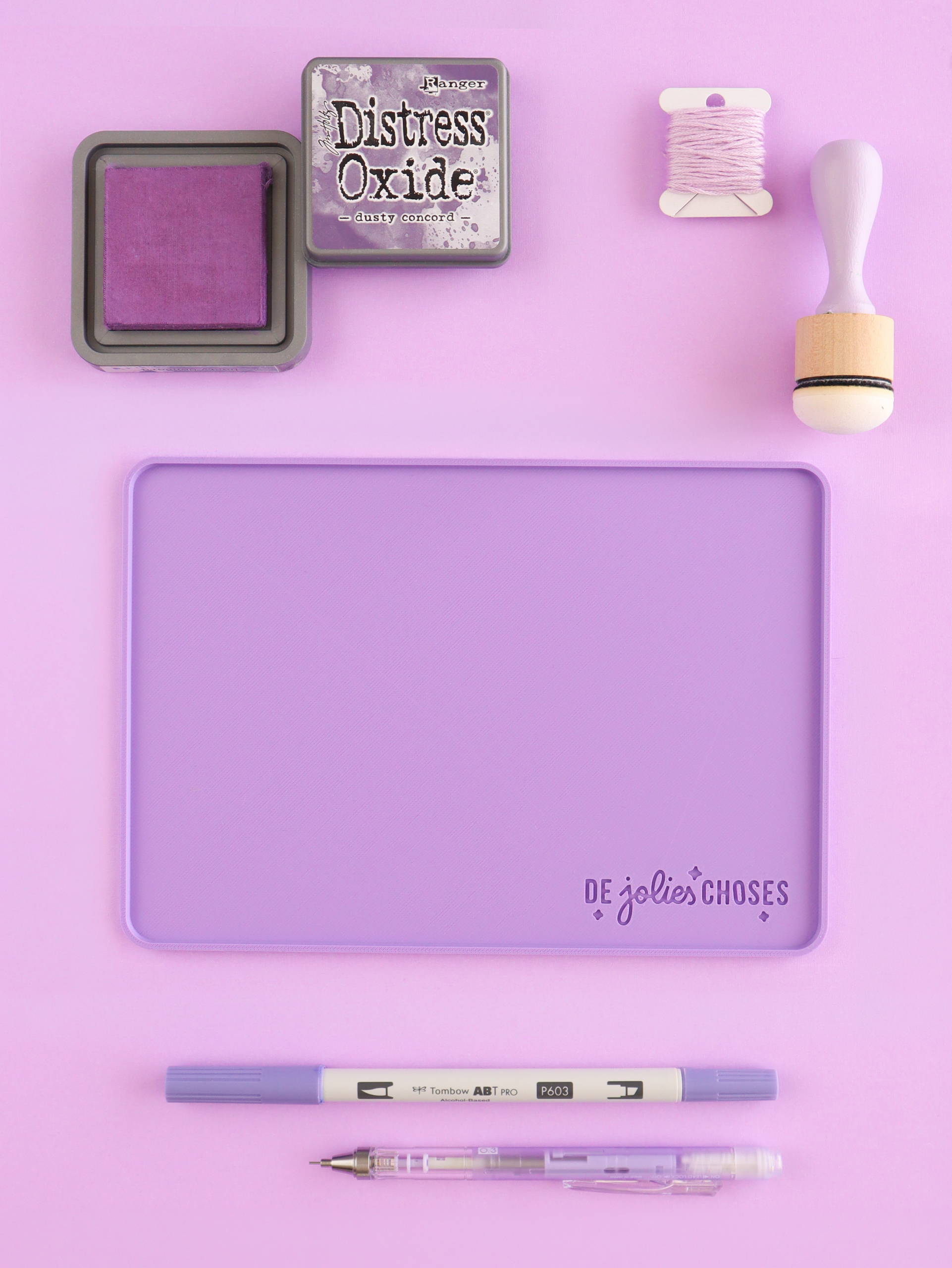 J’utilise L’Organisée à chaque création pour préparer tous mes éléments avant de les coller. En version duo, c’est encore plus pratique : un plateau pour la composition globale et un autre pour les petits détails.